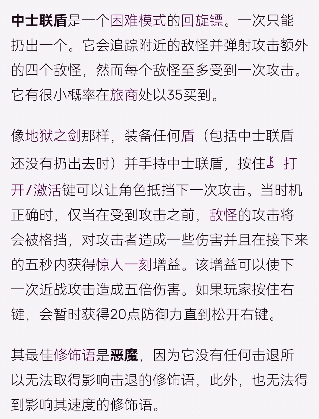 首頁 泰拉瑞亞 問答 泰拉瑞亞中士聯盾怎麼獲得? 2022-10-23 中士聯盾的獲得方式是玩家在旅商處以35個金幣的價格購買,它是一個困難模式的迴旋鏢,並且可以作為盾抵擋怪物的攻擊,但是它出現的概率較低,玩家很難在旅商處購買到它。