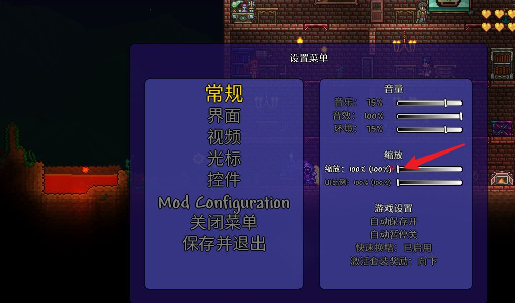首頁 泰拉瑞亞 問答 泰拉瑞亞pc視野範圍怎麼調大? 2022-10-24 泰拉瑞亞pc視野範圍調節方法解析如下:玩家首先打開菜單,然後按鍵盤上的Esc鍵進入遊戲菜單,點擊設置在遊戲菜單中點擊設置按鈕,拖動按鈕拖動縮放按鈕將視野調大就可以了。