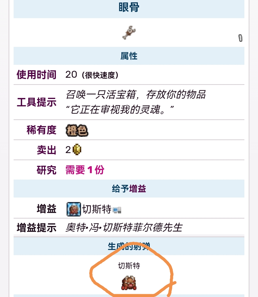 首頁 泰拉瑞亞 問答 泰拉瑞亞切斯特怎麼得? 2022-10-24 玩家獲得眼骨之後把它裝備上就可以召喚出切斯特。眼骨會召喚一隻可移動的豬豬存錢罐,名為切斯特,這參考了飢荒系列。切斯特本質上是錢幣槽的升級版,無需每次重新召喚即可使用豬豬存錢罐。