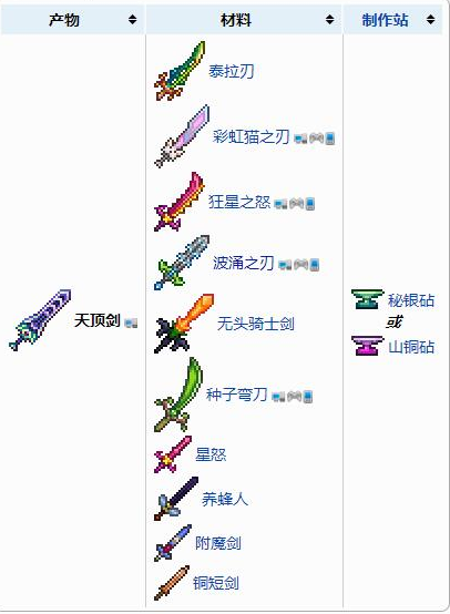 1.泰拉瑞亞養蜂人可以合成天頂劍,需要和泰拉刃、彩虹貓之刃各一把一起在秘銀砧或者山銅砧處才能合成天頂劍。