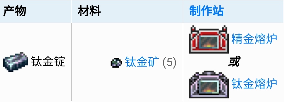 在泰拉瑞亞這款遊戲中,玩家如果想製作鈦金錠,需要用到的材料為鈦金礦,在精美熔爐或者鈦金熔爐這兩個地方都可以製作。