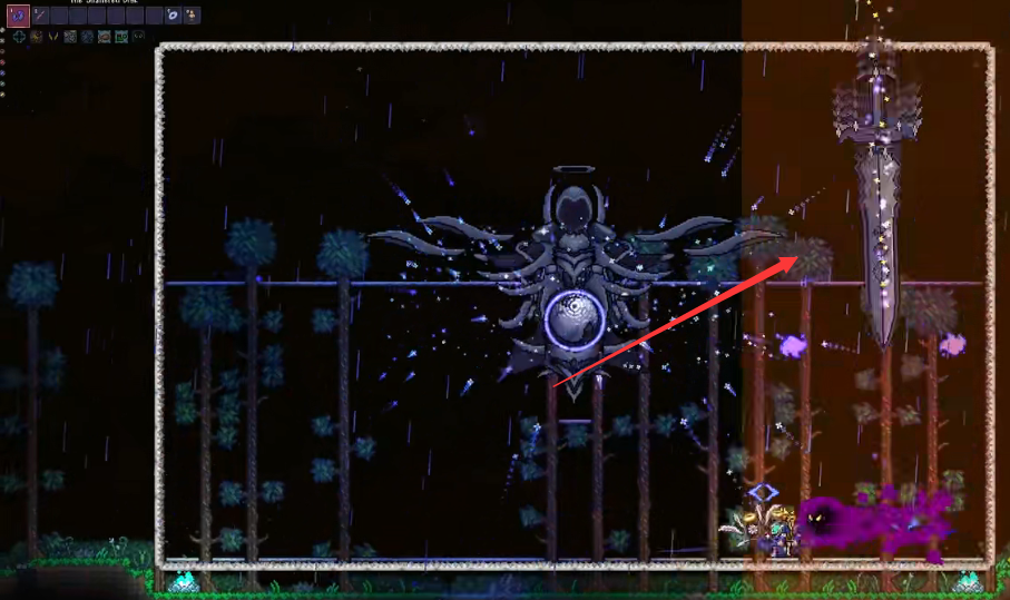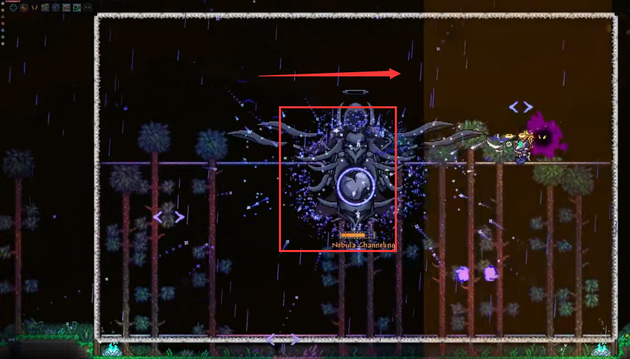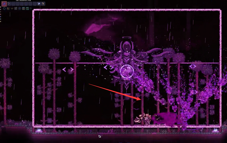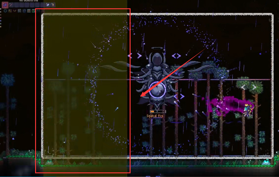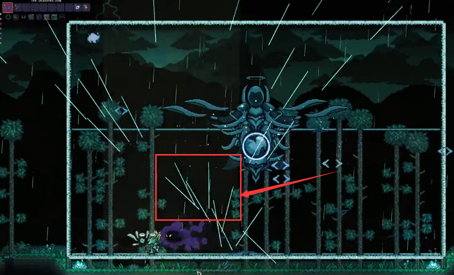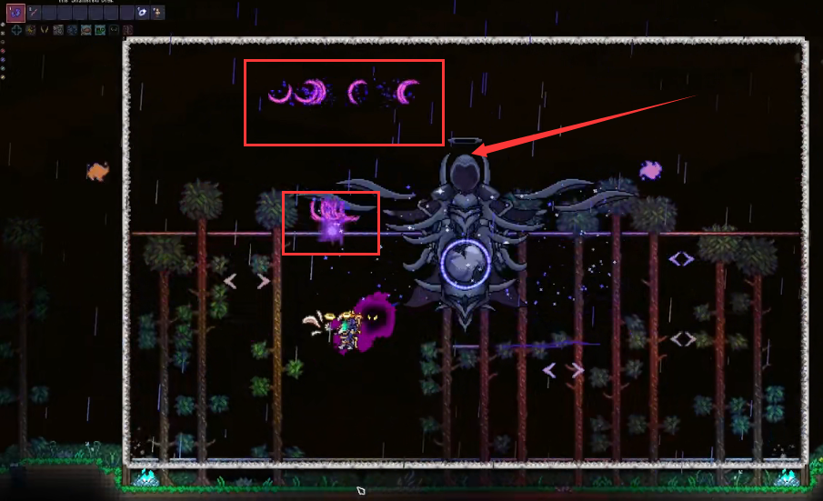 3、之後boss就會蓄力,還會出現一塊紅色區域,在區域攻擊形成前,往左移動規避傷害。