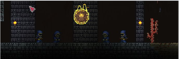 1、在打完石巨人後,建議先去合成甲蟲套裝(盔甲加防禦的好用,由甲蟲外殼合海龜套裝合成),減輕壓力。然後去地牢時,會發現有4個信徒,將他們殺死就會出來拜月神教boss,打倒他進入四神柱時期。