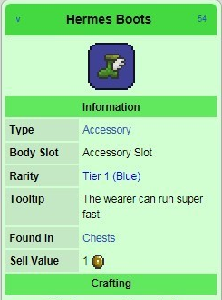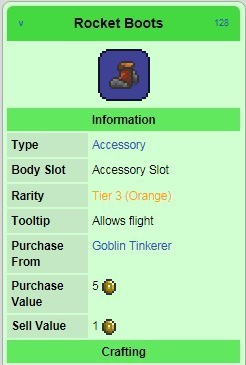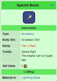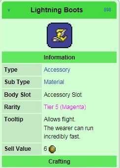 獲得飛行能力穿上它,你就能跑的超級快!綜合了跑鞋與火箭靴的能力,節省一格飾品欄。