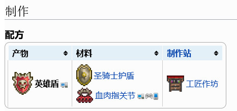 英雄盾是用一個聖騎士護盾和一個血肉指關節在有工匠作坊的地方進行合成的。聖騎士護盾是通過在地牢里擊敗聖騎士獲得的,血肉指關節是通過擊敗猩紅寶箱怪獲得的,工匠作坊可以在哥布林工匠處進行購買。英雄盾可以增加七點防禦力,在裝備者生命值大於25%會分擔團隊內其他成員受到傷害的25%,並且會吸引怪物的仇恨。