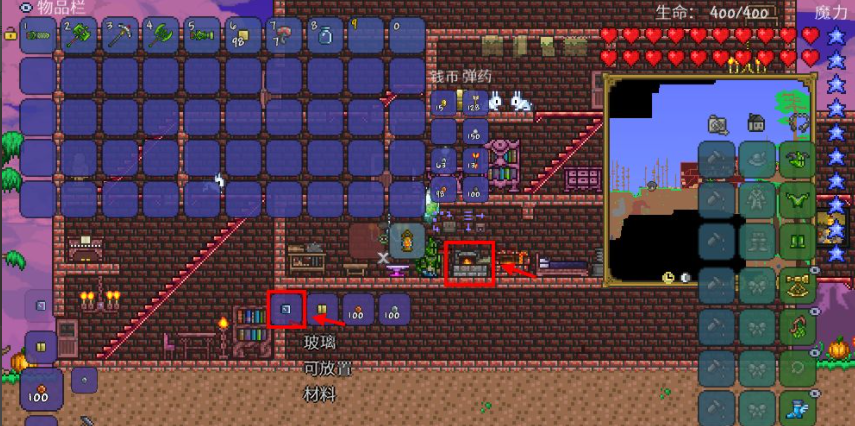 二、使用熔爐製作1塊玻璃,用2個沙塊製作1塊玻璃;