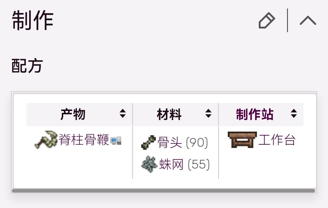 脊柱骨鞭是通過製作獲得的,它的製作材料是90個骨頭和55個製作網,然後在工作台處可以製作。它是早期的召喚師武器,較為容易獲得。
