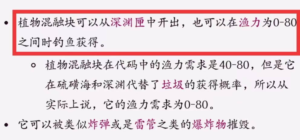 首頁 泰拉瑞亞 問答 泰拉瑞亞植物混合塊怎麼獲得? 2022-10-27 植物混合塊獲得方法介紹:在遊戲《泰拉瑞亞》中,植物混融塊是困難模式之前在深淵自然生成或是在硫磺海和深淵釣魚獲得的物塊,可以從深淵匣中開出,也可以在漁力為0-80之間時釣魚獲得。