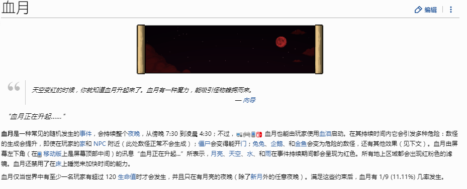 3、在血月的夜晚,敵怪生成速度也會提升,一部分動物也將變成敵怪。血月是隨機發生的事件,玩家也可通過血淚來啟動血月。