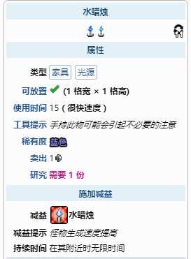 1、放置或手持水蠟燭,可提高周圍敵怪的生成速度。