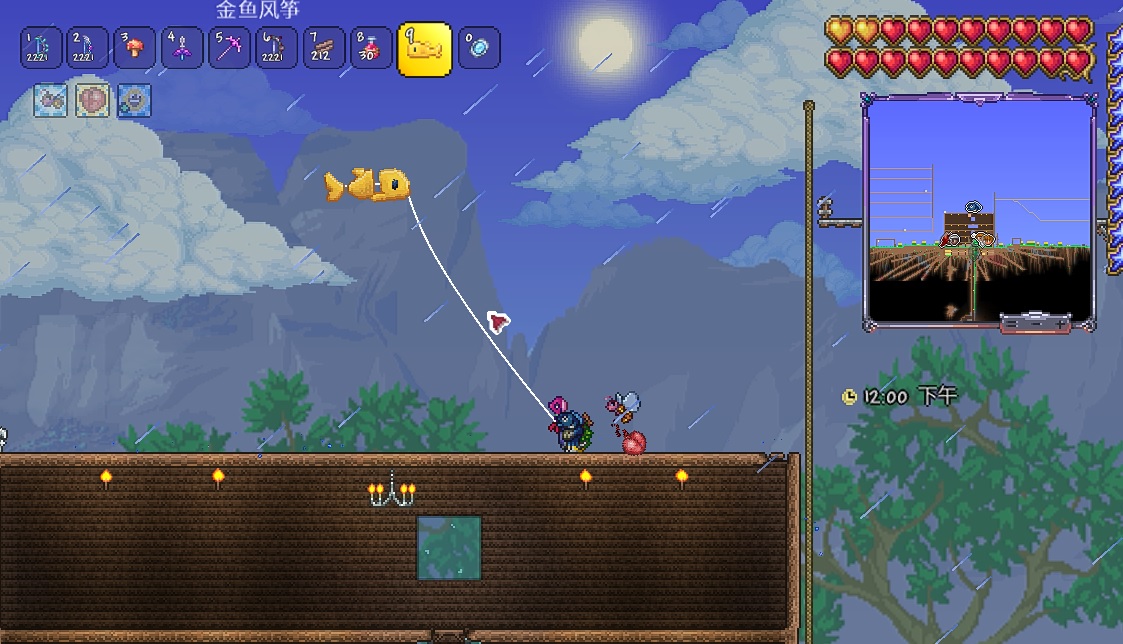 在泰拉瑞亞中,將風箏放到快捷欄中,點擊風箏就能放了,風越大飛的越快,還可以調節高度但是並不能固定風箏,只能拿在手中放風箏。