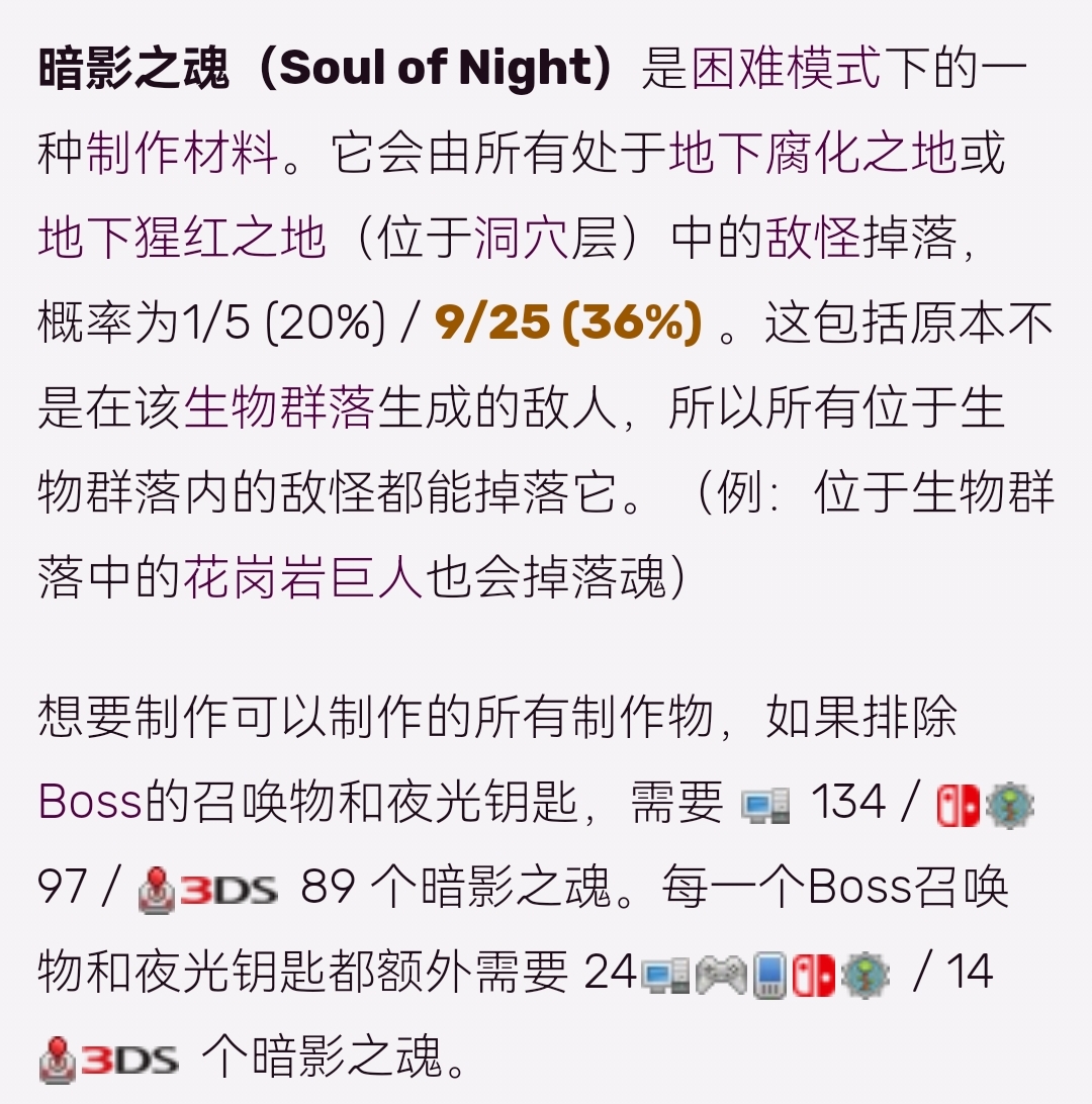 首頁 泰拉瑞亞 問答 泰拉瑞亞暗黑之魂在哪得? 2022-10-29 暗影之魂是在地下腐化之地或者地下猩紅之地擊敗敵怪獲得的,每個怪物最多掉了一個暗影之魂,但是只要是處於地下腐化之地或者猩紅之地,每一個怪物都有可能掉落暗影之魂,即使是非邪惡群落的生物也可以掉落。