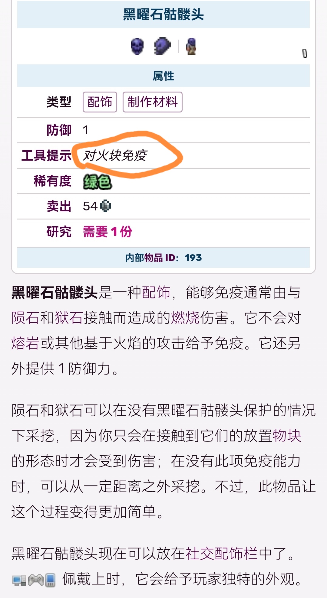 首頁 泰拉瑞亞 問答 泰拉瑞亞黑曜石頭顱免疫岩漿嗎? 2022-10-29 黑曜石骷髏頭是由黑曜石製造的,只需要20個黑曜石就可以製造出一個黑曜石骷髏頭,它的作用是免疫火塊,也就是免疫像隕石這一類附帶灼傷的物品,它是對火塊免疫,而不是對岩漿免疫