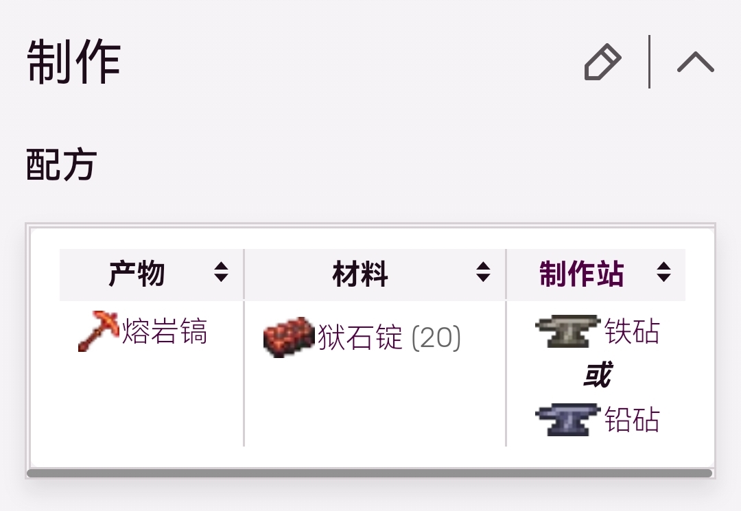 首頁 泰拉瑞亞 問答 泰拉瑞亞熔岩鎬怎麼合成? 2022-10-30 熔岩鎬只需要用20個獄石錠就可以合成了。熔岩鎬是困難模式之前鎬力最強的鎬子,可以用它敲掉腐化之地或者猩紅之地的石頭,他還可以敲掉地牢裡面的磚。