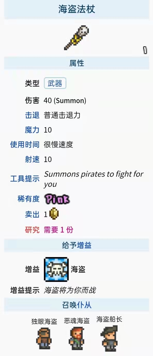 首頁 泰拉瑞亞 問答 泰拉瑞亞海盜法杖怎麼獲得? 2022-10-30 海盜法杖獲得方法介紹如下:在遊戲《泰拉瑞亞》中,海盜法杖有0.05%的幾率由海盜掉落、0.2%的幾率由海盜船長掉落、1%的幾率由荷蘭飛盜船掉落,是一把困難模式、機械 Boss之前的召喚武器,可以生成一名海盜跟隨玩家並使用一把刀攻擊敵怪。