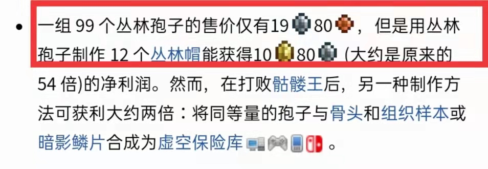 首頁 泰拉瑞亞 問答 泰拉瑞亞叢林孢子能賣多少? 2022-10-31 叢林孢子售價介紹:在遊戲《泰拉瑞亞》中,叢林孢子作為一種製作材料,一組99個叢林孢子的售價僅有19銀幣80銅幣,但是用叢林孢子製作12個叢林帽能獲得10金幣80銀幣。