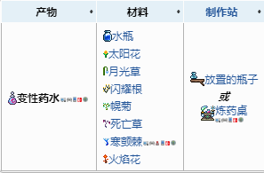 玩家可通過使用變性藥水,從而改變角色的性別。相應的,角色的外觀和受傷音效也會隨之而改變,變性藥水的具體製作配方如下。