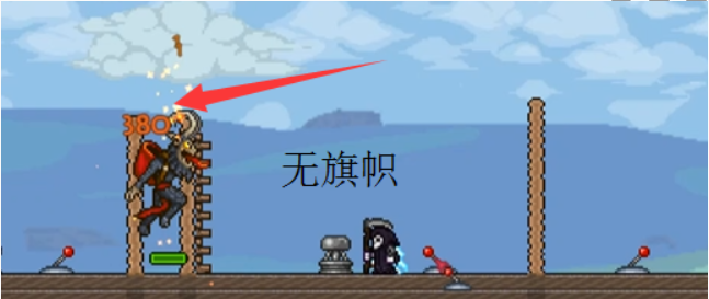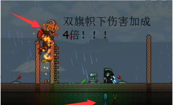 1、一個最簡單,但是效果最好的增加南瓜神教傷害的辦法。很多新人忽略。那就是放置怪物旗幟。普通難度下,傷害加成50%,專家難度下100%。以刷霜月為例子,普通難度可以通過旗幟,可以對BOSS造成1 50%傷害,可對小怪造成225%傷害。專家難度對BOSS造成200%傷害,對小怪造成400%傷害。如下圖。南瓜劍砍水母,撞擊霜月的傻B跳跳怪。