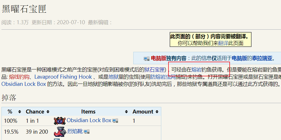 首頁 泰拉瑞亞 問答 泰拉瑞亞獄石寶匣怎麼得? 2022-11-02 獄石寶匣是黑曜石寶匣在困難模式中的一種變體,可經由在熔岩釣魚獲得。打開後會掉落迷你火山、潮濕炸彈、華麗暗影鑰匙、地獄蛋糕塊、溶岩蛇魚缸等等。
