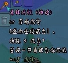 玩家擁有14個蜂蠟後,可以在鉛砧中合成獲得馬蜂法杖,蜂蠟可以通過擊敗叢林蜂巢中的BOSS 蜂後隨機掉落15~30個。