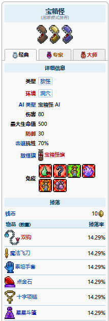 首頁 泰拉瑞亞 問答 泰拉瑞亞星辰披風怎麼獲得? 2022-11-02 星辰披風是通過擊敗寶箱怪獲得的,它是寶箱怪的掉落物品之一擊敗寶箱怪,有14.29%的概率獲得星辰披風,在玩家受到傷害時,他會在周圍落下三顆星星,每顆造成30點魔力傷害。