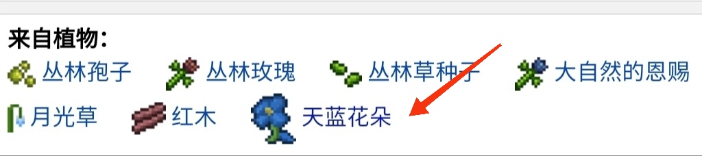 在泰拉瑞亞這款遊戲中,天藍花朵是一種染料材料,也是一種植物,生長在叢林和地下叢林中,它只能用鎬來收割,它的唯一用途是製作天藍染料。