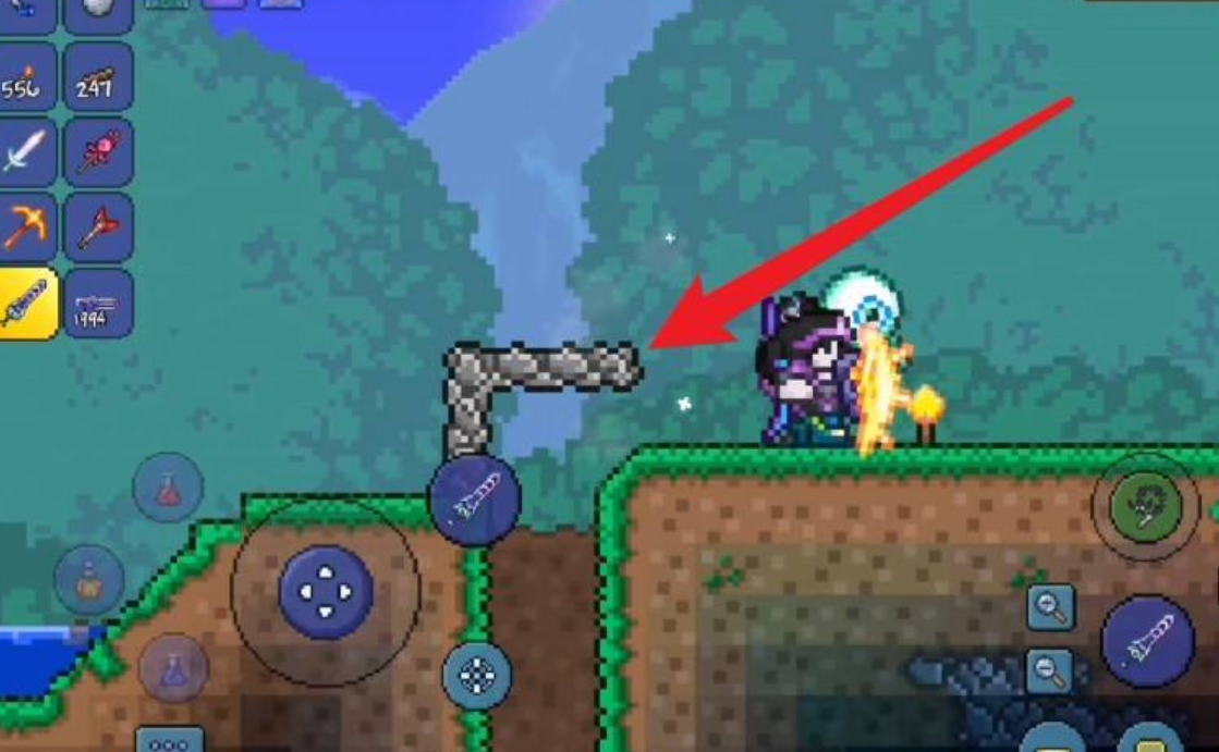 2.然後隨意找一個較為平坦的位置挖一條兩格寬的地獄直通車,最底部要用磚頭堵起來,這樣就可以下去將高爾夫球撿起來再次使用。