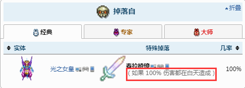 泰拉棱鏡是一個困難模式、世紀之花後的召喚武器,只有玩家在白天對光之女皇造成了其生命100%的傷害時它才會掉落,因此晚上是不會掉落的。