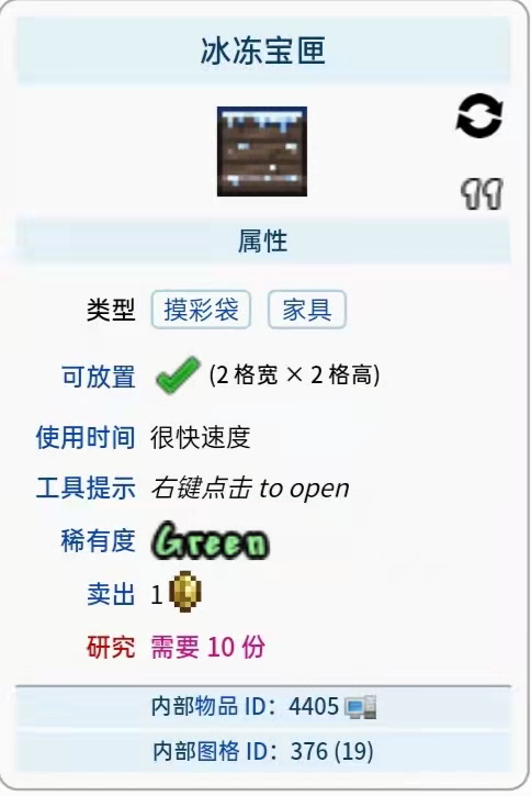 首頁 泰拉瑞亞 問答 泰拉瑞亞冰凍匣怎麼釣? 2022-11-03 冰凍匣釣法介紹:在遊戲《泰拉瑞亞》中,冰凍寶匣是一種環境寶匣,只能在雪地生物群落中釣到,總是包含一個通常在冰雪箱中找到的物品,它的困難模式對應物是針葉寶匣。
