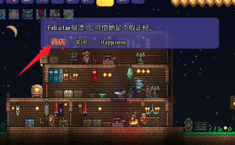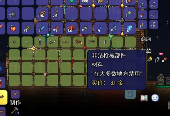 首頁 泰拉瑞亞 問答 泰拉瑞亞非法部件在哪裡買? 2022-11-04 1、首先我們進入泰拉瑞亞地圖。2、然後我們在遊戲中玩到夜晚天黑。3、在房間里找到武器商人對話,點擊商店。4、使用金幣購買非法部件即可。