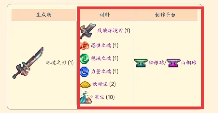 首頁 泰拉瑞亞 問答 泰拉瑞亞環境之刃怎麼做? 2022-11-04 環境之刃做法:在遊戲《泰拉瑞亞》中,玩家可以用殘缺環境刃、恐懼之魂、視域之魂、環境之刃、力量之魂、妖精塵和星塵在秘銀砧或山銅砧中製作獲得。