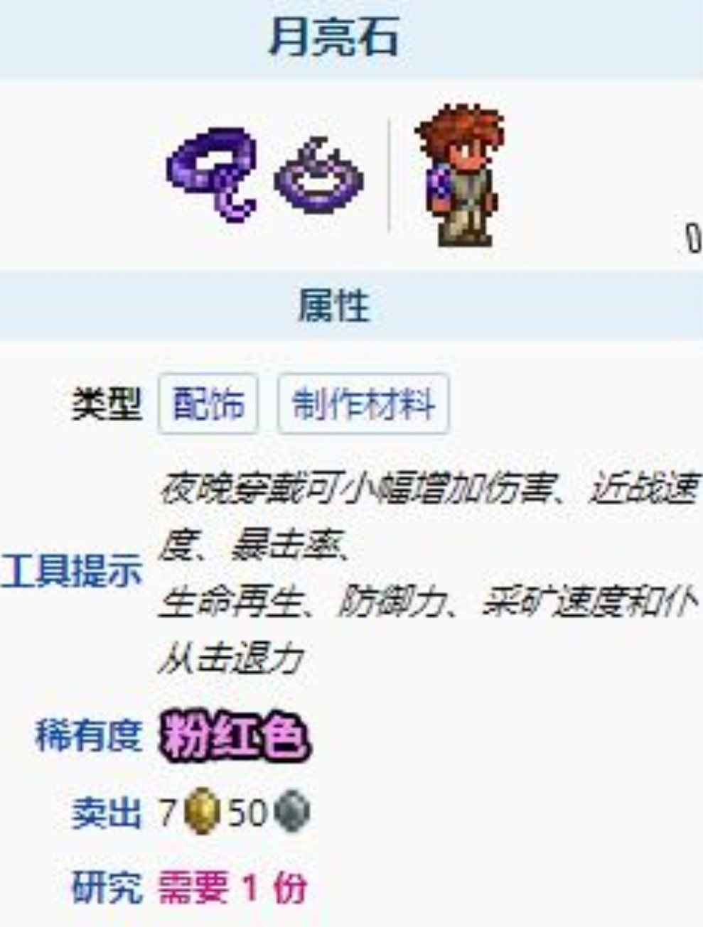 首頁 泰拉瑞亞 問答 泰拉瑞亞月光石怎麼獲得? 2022-11-04 泰拉瑞亞遊戲里的月亮石是一種困難模式的配飾,在日食事件中有幾率從吸血鬼中掉落,它提供與太陽石相同的效果,但它只會在夜晚或日食期間激活這些效果。