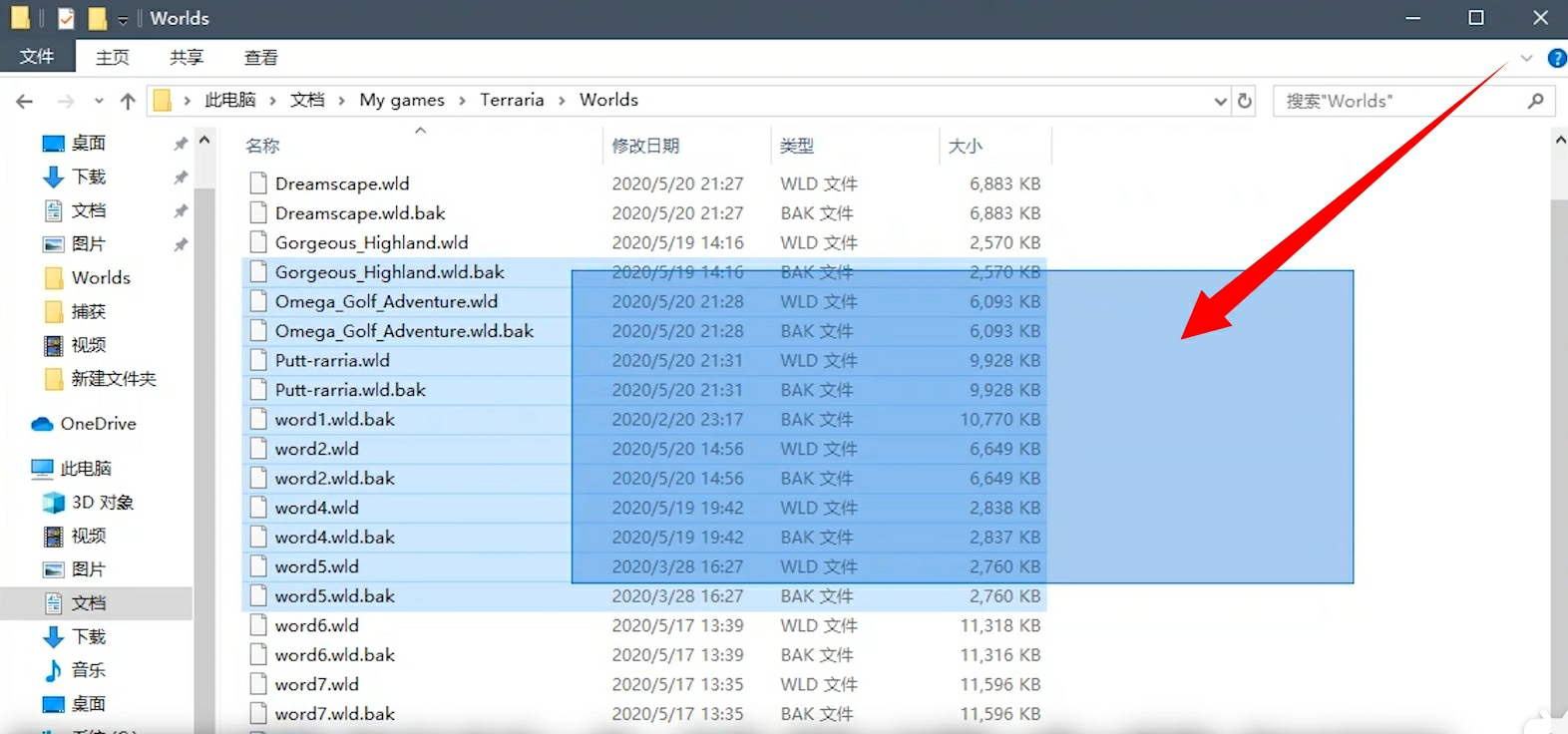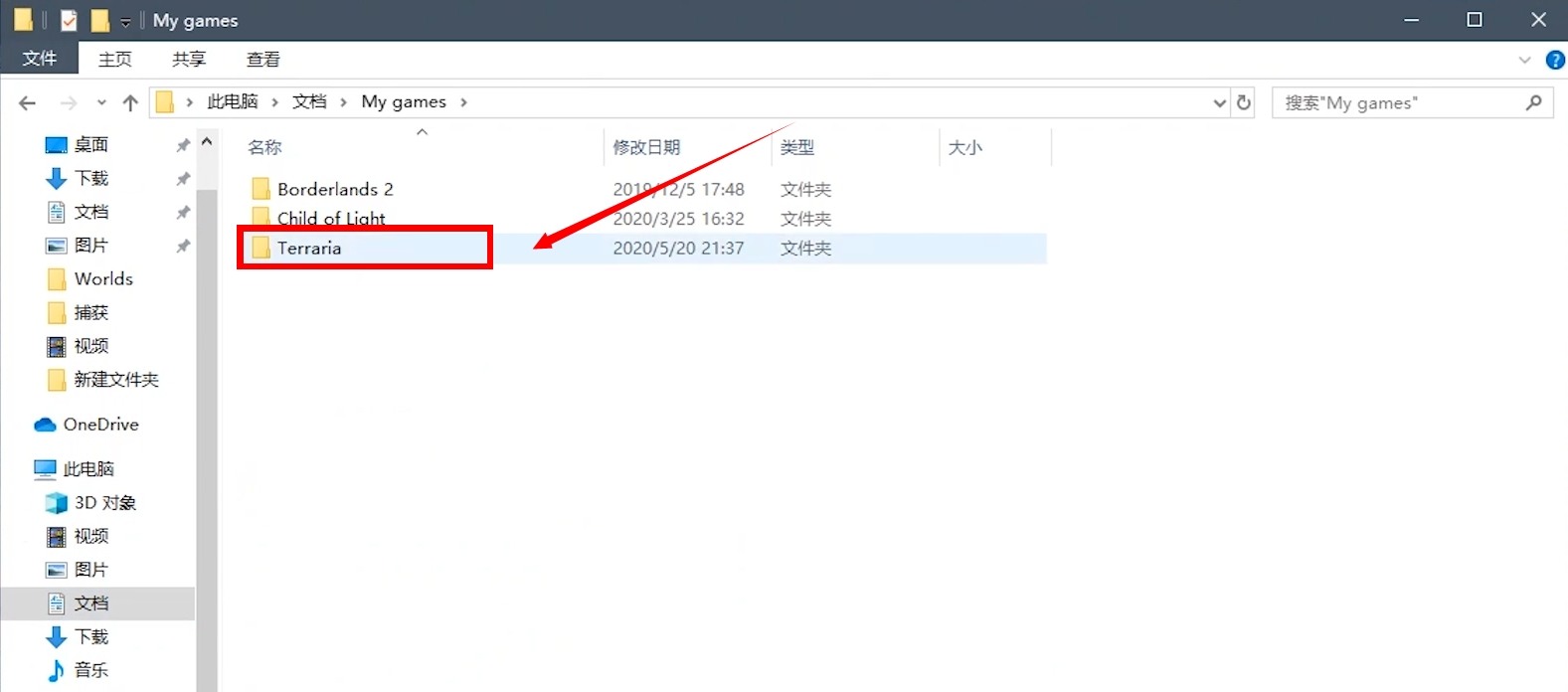 4.打開泰拉瑞亞文件夾,裡面有一個Words文件夾,如圖下所示。
