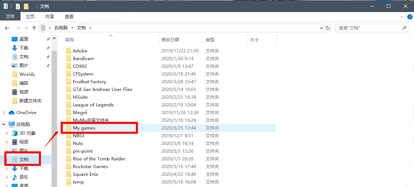 3.下載之後在我的電腦里打開文檔,在文檔中找到mygamg這個文件夾,如圖下所示。