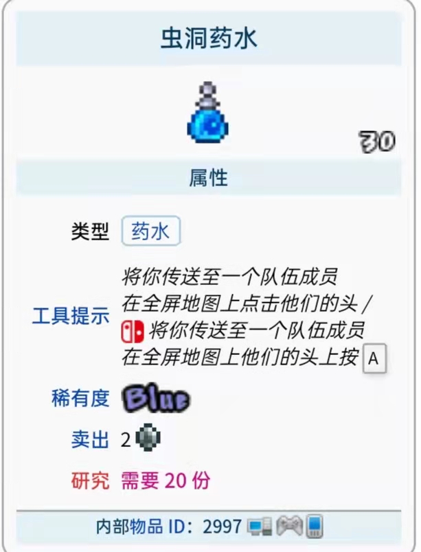 首頁 泰拉瑞亞 問答 泰拉瑞亞蟲洞用不了是為什麼? 2022-11-04 蟲洞用不了原因:在遊戲《泰拉瑞亞》中,蟲洞用不了應該是因為使用的方式錯誤,首先進入背包頁面,把蟲洞藥水移動到背包第一行,在快捷使用欄中關閉背包回到原始的地圖頁面,然後在遊戲的左上角就能看到蟲洞藥水,再點擊藥水,點擊右下角使用蟲洞藥水即可。