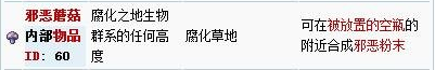首頁 泰拉瑞亞 問答 泰拉瑞亞腐化蘑菇怎麼獲得? 2022-11-05 腐化蘑菇就是邪惡蘑菇,可以在腐化之地的草上使用武器或工具一擊砍下並收集。邪惡蘑菇指的是魔菇,魔菇只會出現在腐化之地中的草上,作用是製作魔粉,與魔菇相似的道具是毒蘑菇,毒蘑菇只會出現在猩紅之地中被感染的草上,作用是製作毒粉。