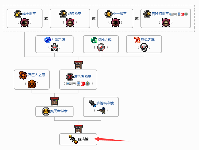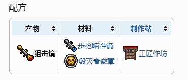 首頁 泰拉瑞亞 問答 泰拉瑞亞狙擊手目鏡怎麼獲得? 2022-11-05 1、泰拉瑞亞狙擊鏡是一種困難模式、石巨人後的配飾,能增加10%遠程傷害和 10%暴擊率。獲得方法為使用步槍瞄準鏡和毀滅者徽章在工匠作坊合成。2、狙擊鏡製作樹參考如下: