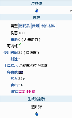 首頁 泰拉瑞亞 問答 泰拉瑞亞潮濕手雷怎麼得? 2022-11-06 在泰拉瑞亞中,濕炸彈是液體炸彈的一種,爆炸時會放置少許水。玩家可消耗干炸彈在水或水槽處製作濕炸彈,也可以通過開啟黑曜石匣或獄石匣獲得。爆破專家也以25銀幣的價格出售濕炸彈。