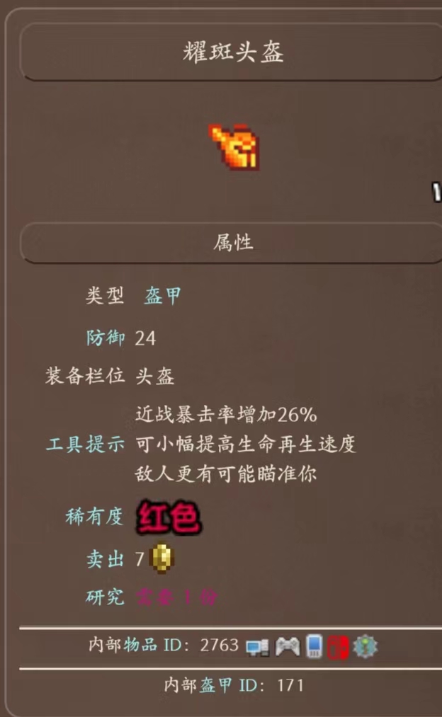 1、耀斑頭盔:提供24點防禦力,近戰暴擊率增加17%和敵人更有可能瞄準你。