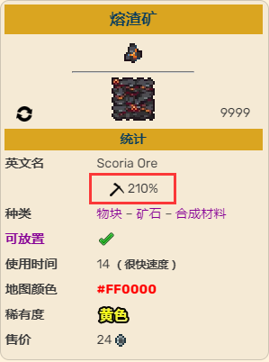 首頁 泰拉瑞亞 問答 泰拉瑞亞災厄熔渣礦怎麼挖? 2022-11-07 熔渣礦位於深淵之中,深淵位於硫磺海下面,玩家首先需要進入硫磺海下方的深淵,在深淵地形中採集熔渣礦,熔渣礦對應鎬力為210%,至少需要鋸刃鎬(鎬力210%)來挖掘,如下圖所示: