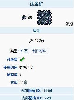 首頁 泰拉瑞亞 問答 泰拉瑞亞災厄鈦金礦怎麼獲得? 2022-11-07 鈦金礦屬於困難模式的礦石,會在使用神錘(或更高級錘子)破壞一個祭壇時生成。也可以通過開寶匣獲得,這樣便不需要用於挖掘它們的更高級鎬子。