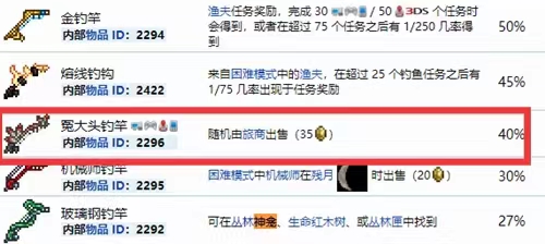 在遊戲《泰拉瑞亞》中,需要擊敗機械骷髏王後,跟隨旅商隨機出現售賣,售價35金幣、漁力40%,稀有度是綠色。