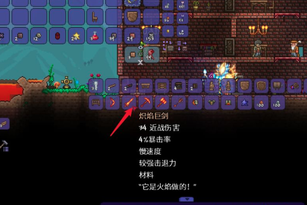 首頁 泰拉瑞亞 問答 泰拉瑞亞赤焰之劍怎麼獲得? 2022-11-07 1、首先我們進入地獄,在小黑屋找到地獄熔爐。2、將獄石和黑曜石放入地獄熔爐,得到獄石錠。3、製作困難模式前的砧,作為製作站點。4、靠近砧打開製作界面,將20個獄石錠合成赤焰之劍。