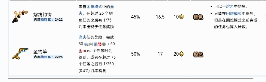 首頁 泰拉瑞亞 問答 泰拉瑞亞金釣竿可以釣岩漿嗎? 2022-11-07 金釣竿不可以在岩漿當中釣魚,只有熔線釣竿可以在熔岩當中釣魚。熔線釣竿後面的備注特地的說了,它可以在岩漿當中釣魚,而金釣竿沒有,金釣竿的特點是它可以提供50點漁力,它是所有魚竿當中提高漁力最多的。