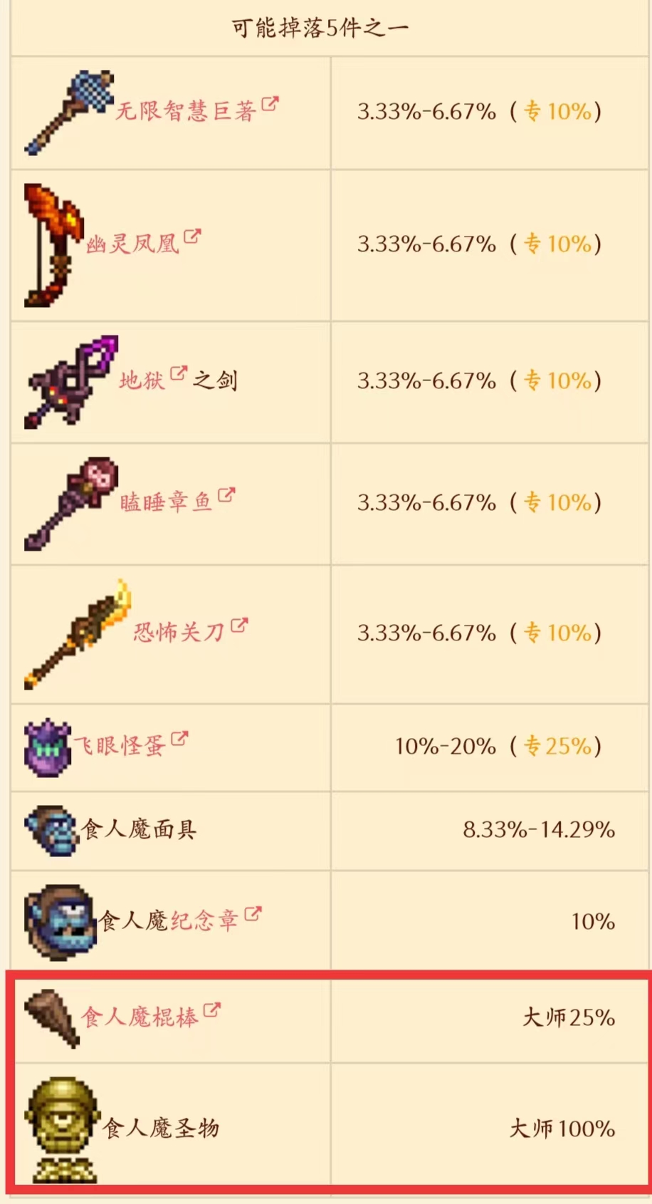 首頁 泰拉瑞亞 問答 泰拉瑞亞大師難度食人魔為什麼不掉遺物? 2022-11-08 大師難度食人魔不掉遺物原因介紹如下:在遊戲《泰拉瑞亞》中,因為在遊戲數據中,食人魔雖然有專家模式對應的獎勵袋,但屬於無法獲得品,因為它並不會掉落。