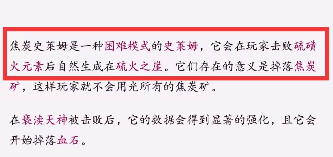 在遊戲《泰拉瑞亞》中,焦炭史萊姆是一種困難模式的史萊姆,會在玩家擊敗硫磺火元素後自然生成在硫火之崖。