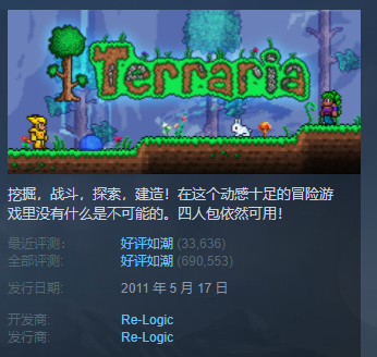 首頁 泰拉瑞亞 問答 泰拉瑞亞是什麼類型的遊戲? 2022-11-08 泰拉瑞亞是一款高自由度的沙盒遊戲 泰拉瑞亞的遊戲類型為冒險類、動作類、扮演類、角色類1、泰拉瑞亞遊戲的價格2、泰拉瑞亞遊戲的上線時間1、泰拉瑞亞遊戲的價格為36元2、泰拉瑞亞遊戲的上線時間為2011年5月17日以上就是遊戲泰拉瑞亞的價格以及上線時間