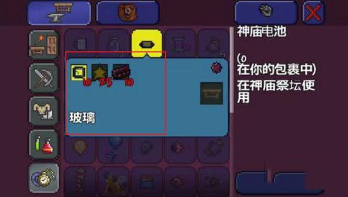 首頁 泰拉瑞亞 問答 泰拉瑞亞石巨人電池怎麼合成? 2022-11-09 合成配方:25個落星、10個精金錠、10個玻璃。【泰拉瑞亞】遊戲中落星會在夜晚時掉落,玩家可在空中造一個任意方向的直線長走道刷;5個精金礦放在精金熔爐或鈦金熔爐可合成精金錠;用兩個沙塊在熔爐可冶煉成一個玻璃。