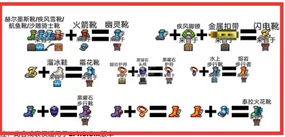 首頁 泰拉瑞亞 問答 泰拉瑞亞鞋子合成路線是什麼? 2022-11-10 鞋子合成路線介紹如下:在遊戲《泰拉瑞亞》中,不同的鞋子會有不同的效果,可以適應不同的環境,玩家們可以根據不同的地形來選擇合適的靴子,鞋子合成路線如下圖所示: