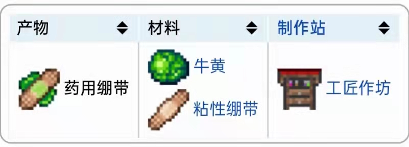 首頁 泰拉瑞亞 問答 泰拉瑞亞藥用繃帶怎麼造? 2022-11-10 藥用綳帶製作方法介紹:在遊戲《泰拉瑞亞》中,在泰拉瑞亞遊戲中,玩家可以通過粘性綳帶、牛黃在飾品工作台製作獲得,是一種困難模式配飾,給予了對任意流血和毒藥減益的免疫力。